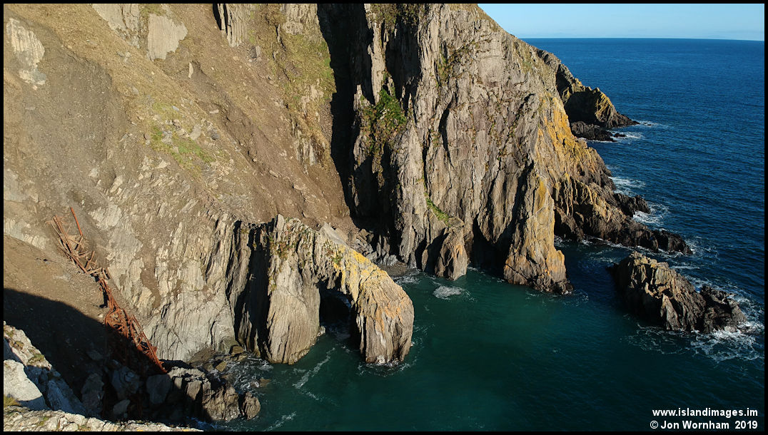 Getting lower! I had been hoping to go almost down to sea level, by the rock shelf at the bottom of the picture was causing me some problems. Whilst I could see the drone, I couldn't directly see the rock from my flying position on the clifftops.