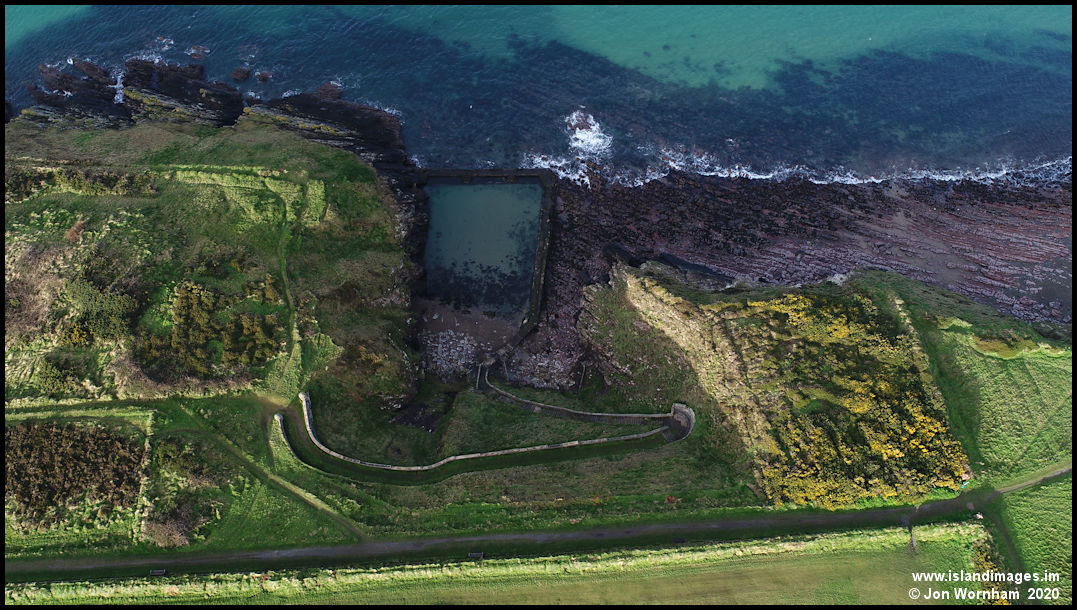 Turning the camera through 90 degrees for this view. Although it's almost midday, th low winter sun isn't getting down as far as the old pool.