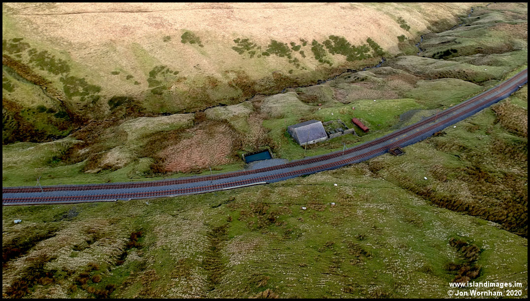 A near vertical view of the Snaefell Mountain Railway former power generating station. Coal would be hauled here during the winter to power the station for the summer operating season.