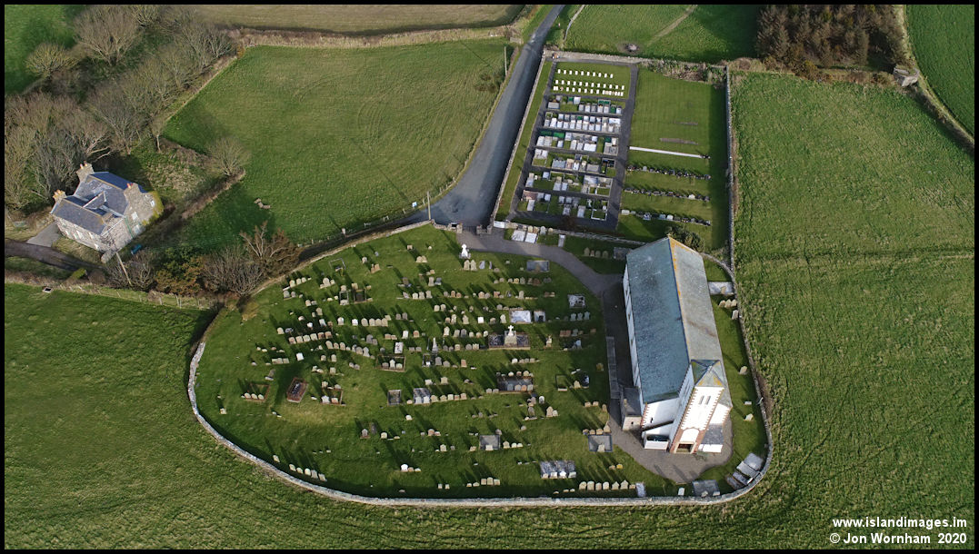 A near vertical view showing the interesting arrangements of old and newer graveyards.