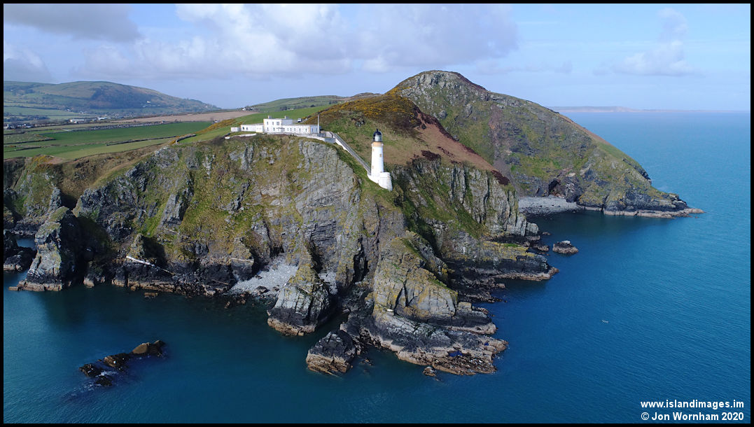 Descending to a lower altitude to show how the lighthouse was constructed part way down the cliff, with the lighthouse keepers cottages above.
