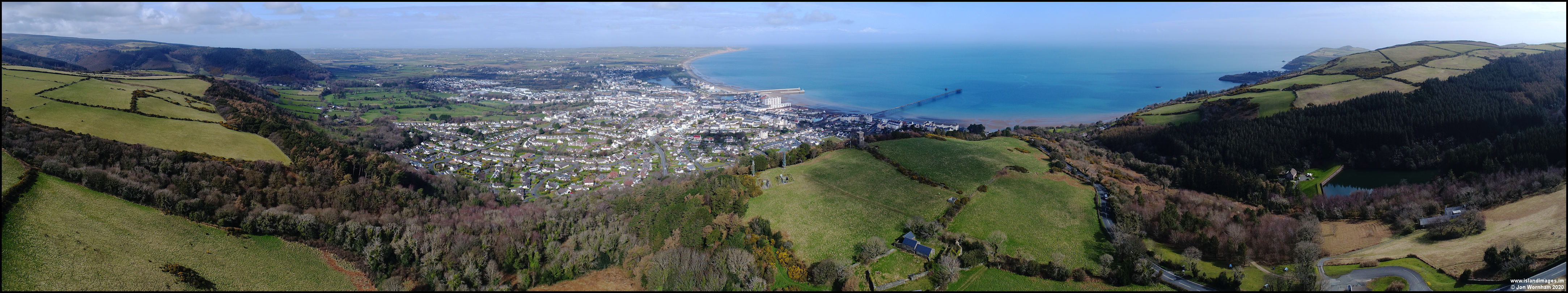 Panorama from overhead Lherghy Frissell, looking from Sky Hill on the left, across Ramsey and to Maughold Head on the right.