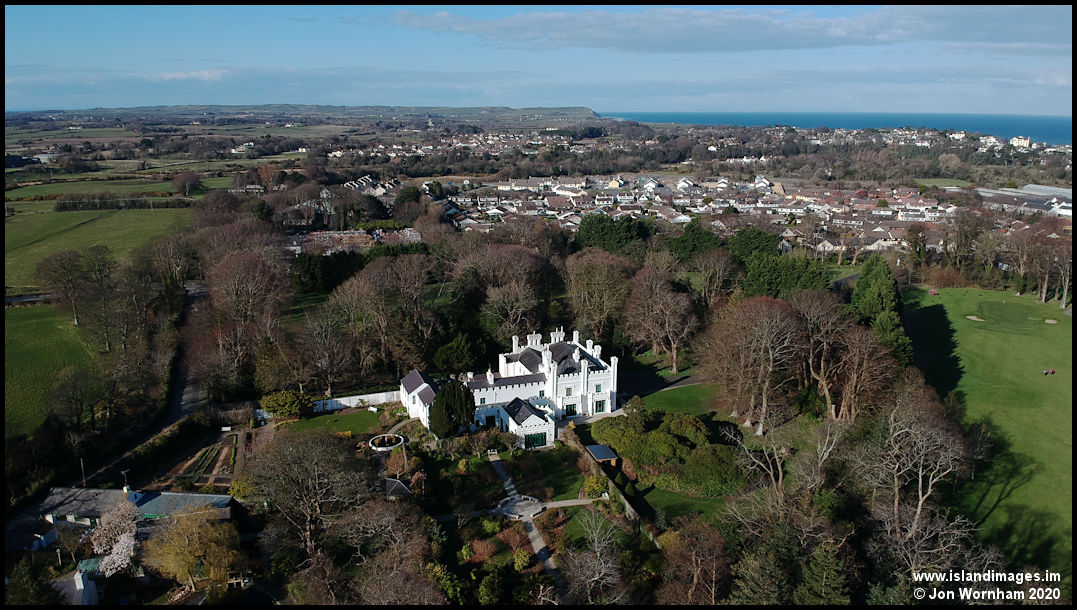 Milntown House and some of the gardens, with the town of Ramsey beyond.