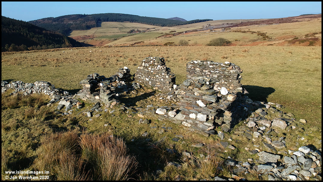 Final shot of the chapel ruins, with Beckwith's Mine visible in the distance. The remains of the third tholtan, Claghbane, can just be seen this side of the mine