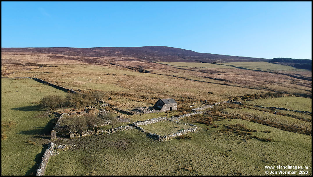 The final picture of Claghbane, angled to show South Barrule rising above. Life on these upland farms must have been hard, although there is one still inhabited not too far away.