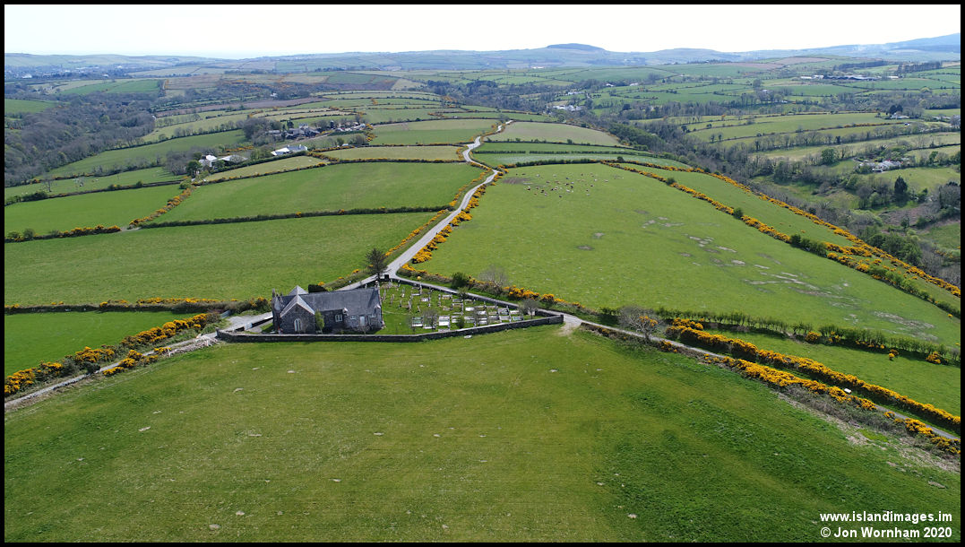Looking south past St Luke's Church, East Baldwin valley on the left and West Baldwin on the right.