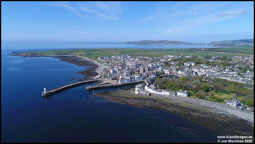 Looking across Castletown to Scarlett with Port St Mary in the distance.
