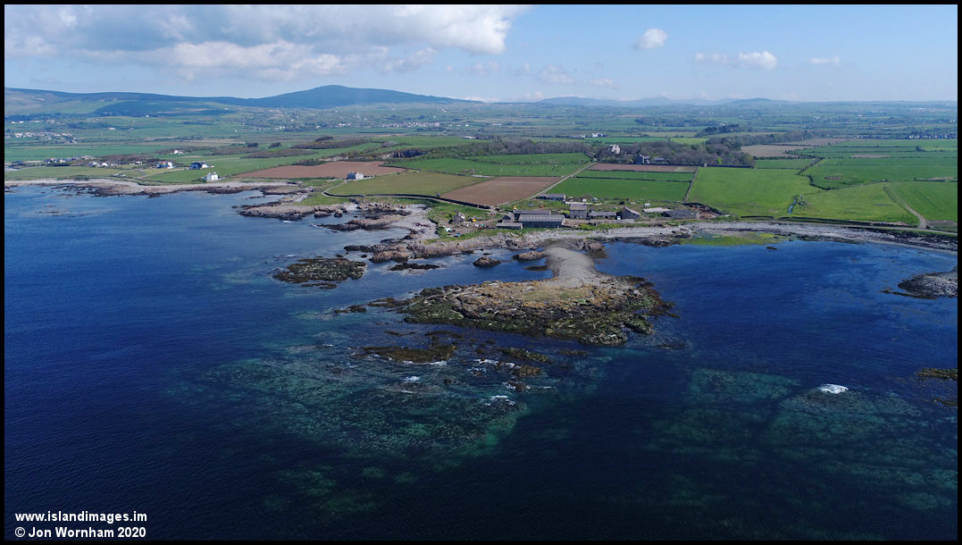 Looking north past Pooil Vaaish Farm with South Barrule in the distance.