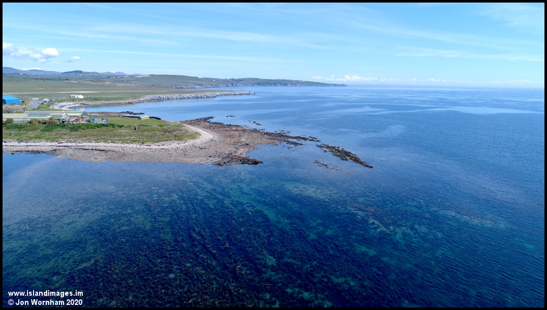 The little spit of land that forms the northern edge of Derbyhaven Bay. The area where Ronaldsway Airport's main runway was extended into the sea can be seen beyond.