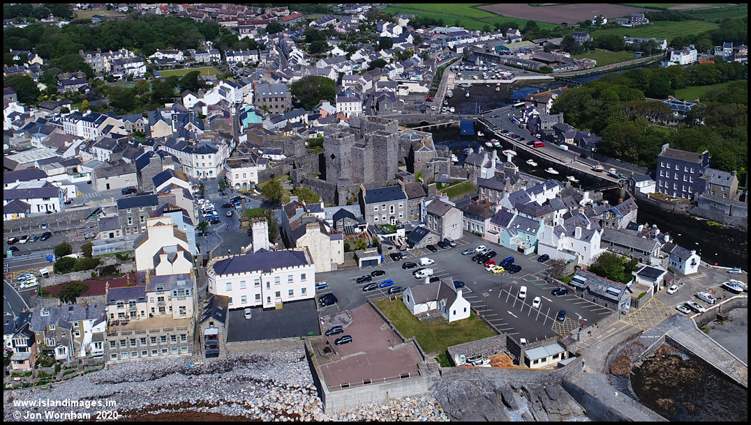 A crop from a larger picture to show Castle Rushen and the surrounding area.