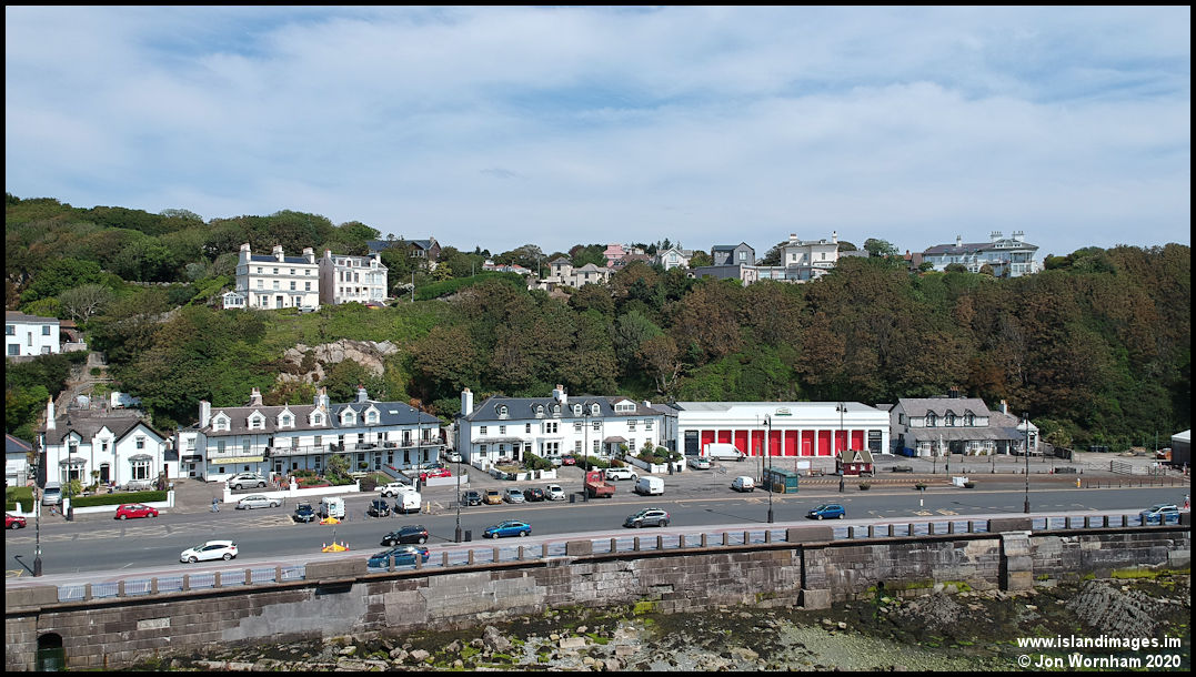 The new Douglas Bay Horse Tramway building fits in nicely between The Terminus tavern and the houses at Derby castle.