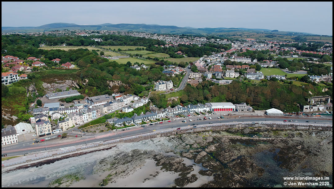 Looking down at Summerhill. Most of the houses in this picture are in fact in Onchan rather than Douglas. The boundary is where the green of Summerhill Glen reaches to the road.