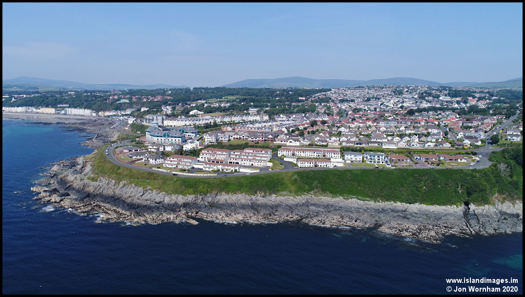 The Onchan Head area, with the village climbing away up the hill beyond.