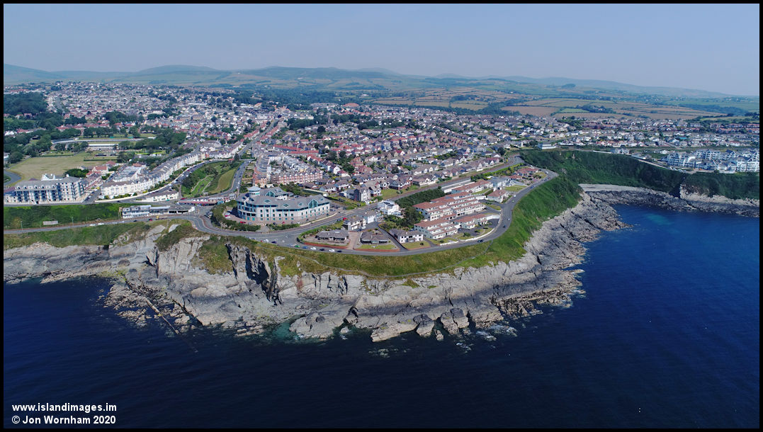 Onchan Head. The modern office building towards the centre of the picture was constructed on the site of a former hotel, which was used during WW2 to train covert radio operators.