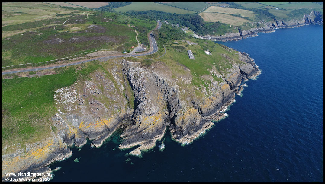 Looking down on the Howstrake headland with Groudle beach hidden behind. The cliffs here rise to around 250ft above sea level.