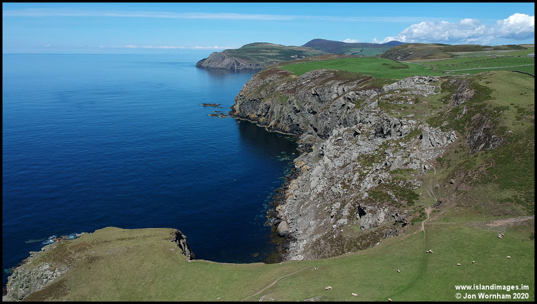 Looking north across Aldrick bay with Bradda Head in the distance.