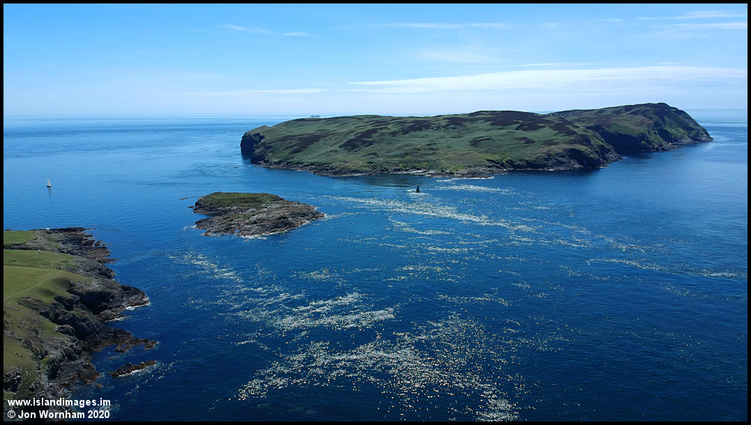 Loking south to the Sound and Calf of Man, with the sun glinting off the sea.