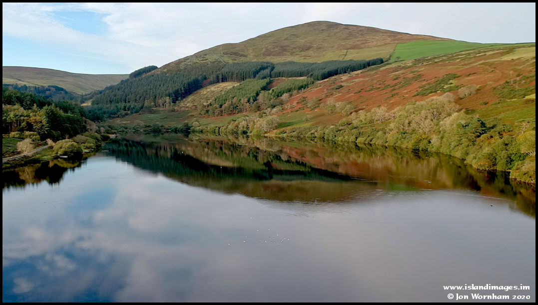 Carraghan reflected in a very calm Injebreck Reservoir.