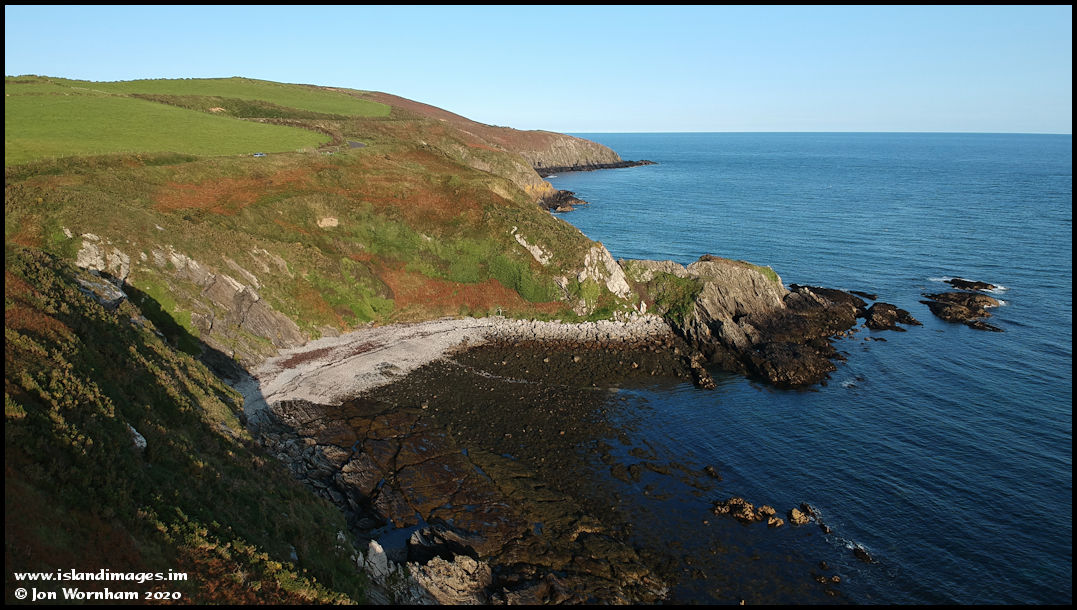 Low tide has uncovered the rock by Keristal beach. You can still see the channel cut through them to allow boats to be launched at various tide states.