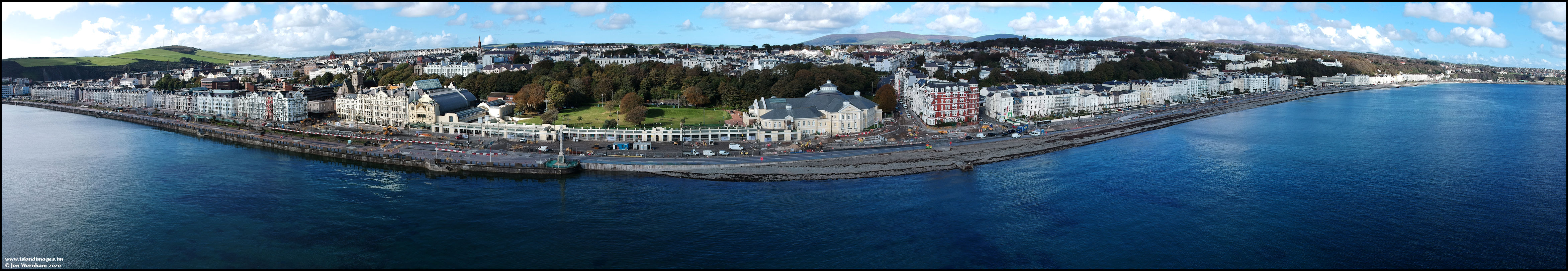 Panorama of Douglas Promenade centred on the Villa Marina Arcade.