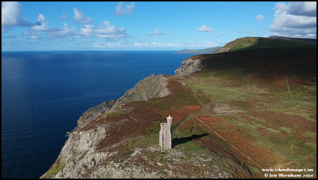 Climbing away from the tower to take in the view along the coast to the north, with Peel Hill in the distance.