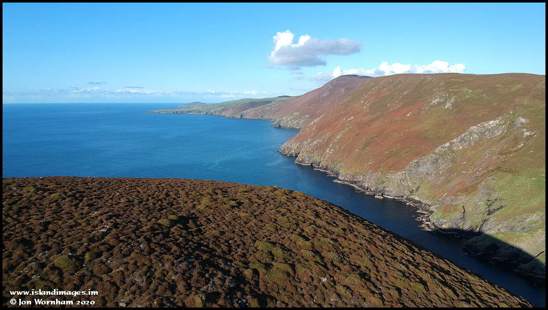 I've now walked down around 350 ft from Bradda Hill in the hope of getting some views of Fleshwick Bay, only to find it's now in deep shadow from the hill!