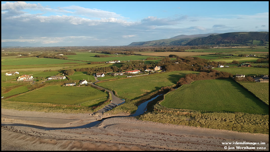 Looking inland. Ballaugh Old Church is more or less hidden in the trees centre right.