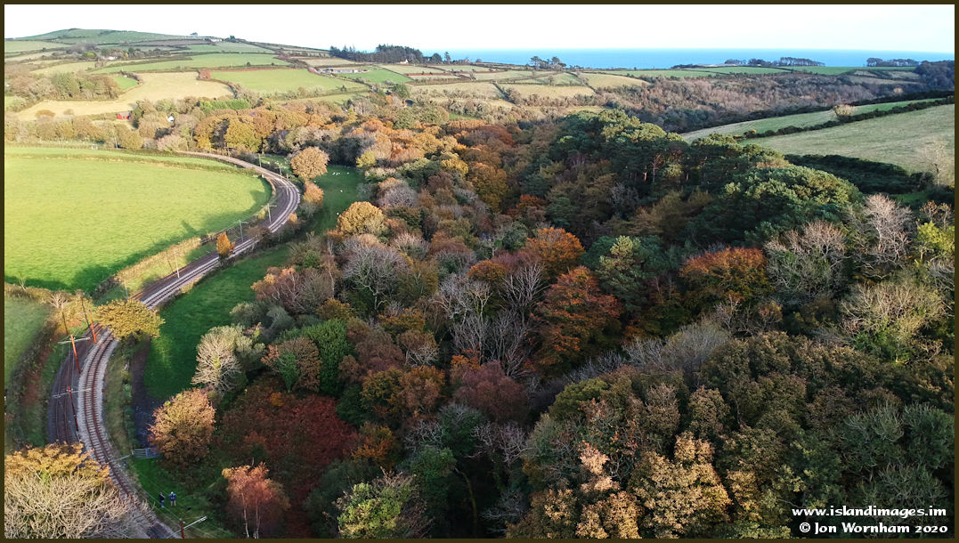 Looking down on the glen with the Manx Electric Railway curving around it.