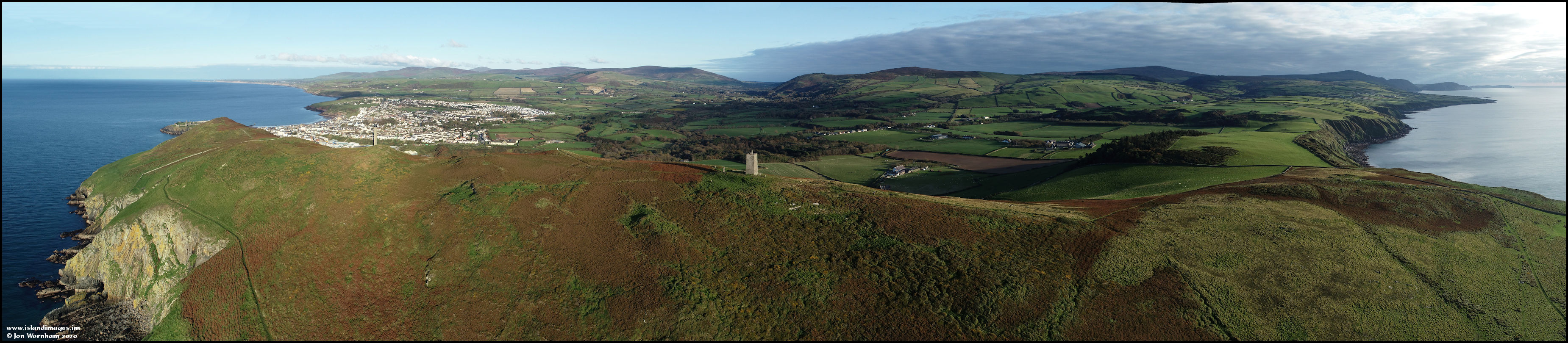 Panorama at Peel Hill centred on Corrin's Tower.