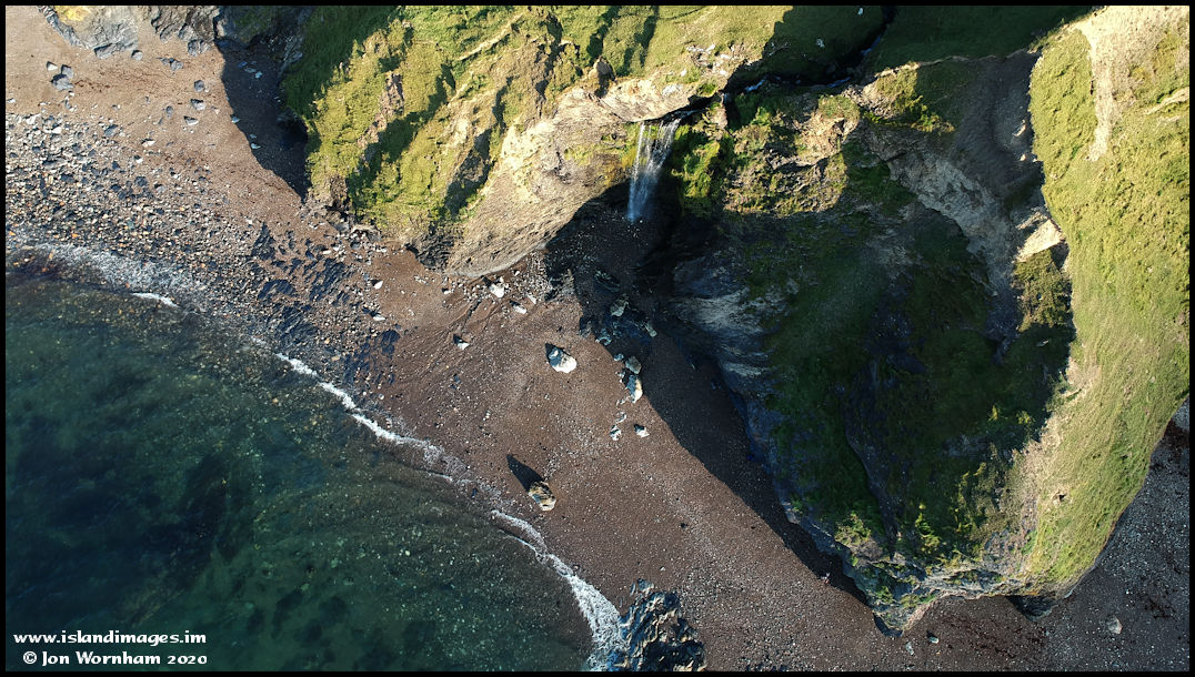 Looking down on the waterfall and beach. At high tide this whole area is under water.