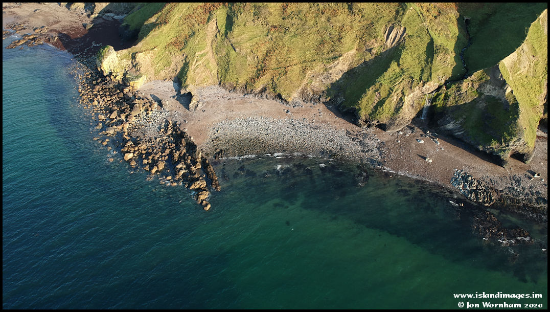 A semi-vertical view of the little spit of rocks at the northern end of the beaches, the only area taht doesn't cover with water at high tide.