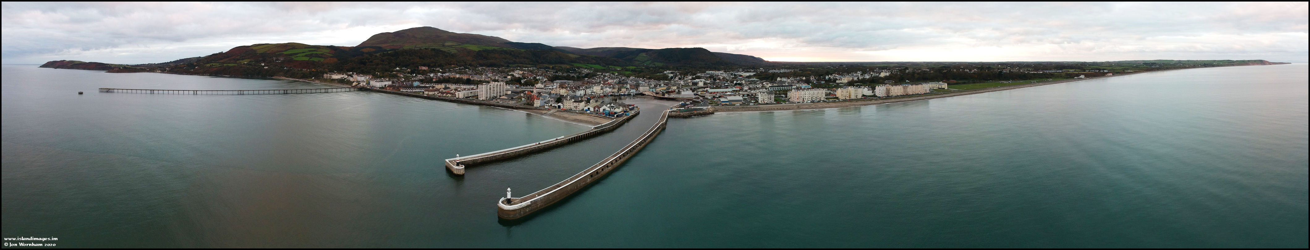 A stitched panorama from eleven original shots, looking from Maughold Head on the left, past Ramsey and up to the Bride Hills on the right.
