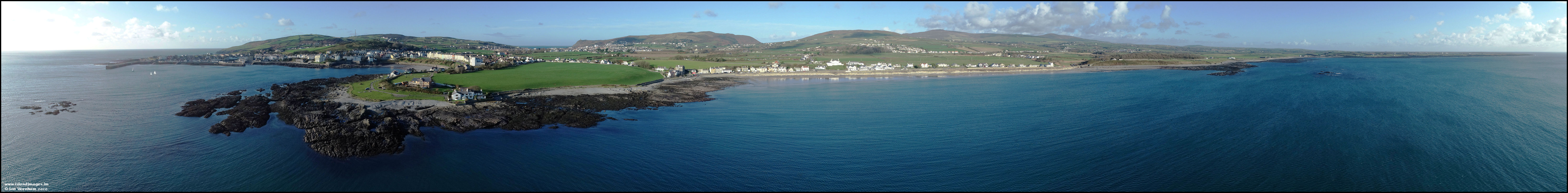 Panorama shot from just off Gansey Point and looking from Port St Mary harbour on the right, then past the village and to Gansey Shore and Bay-ny-Carrickey.