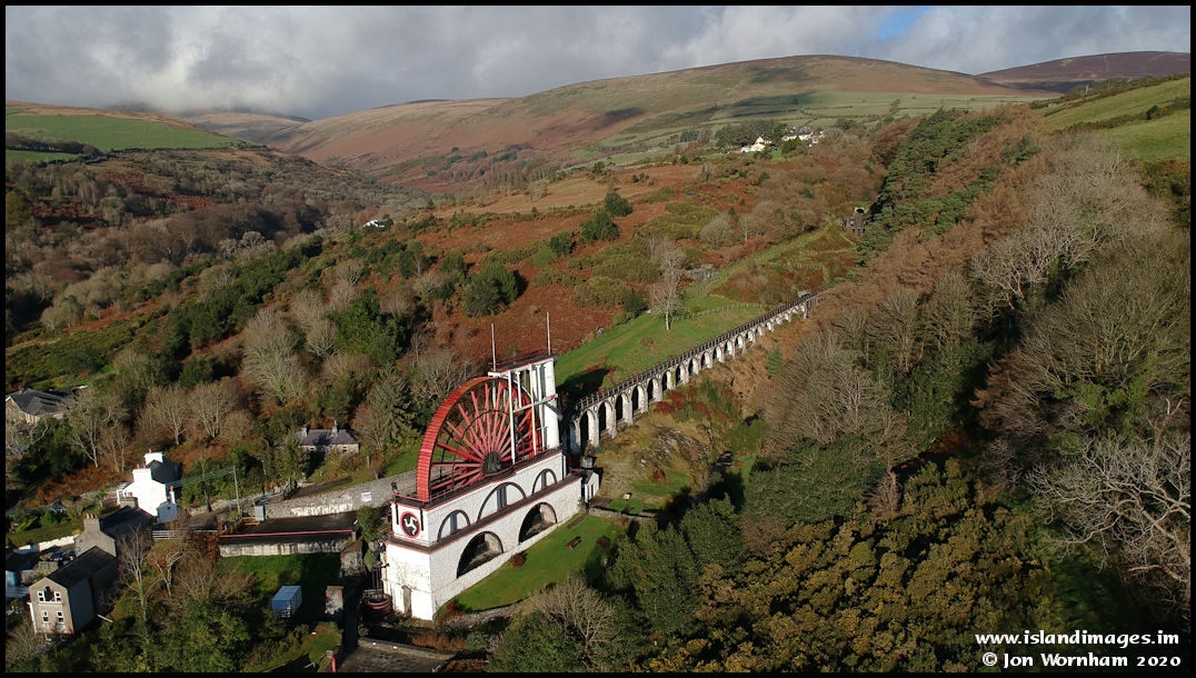 A higher altitude view of the wheel and the viaduct that carries the drive from the wheel to the actual pump further up the valley.
