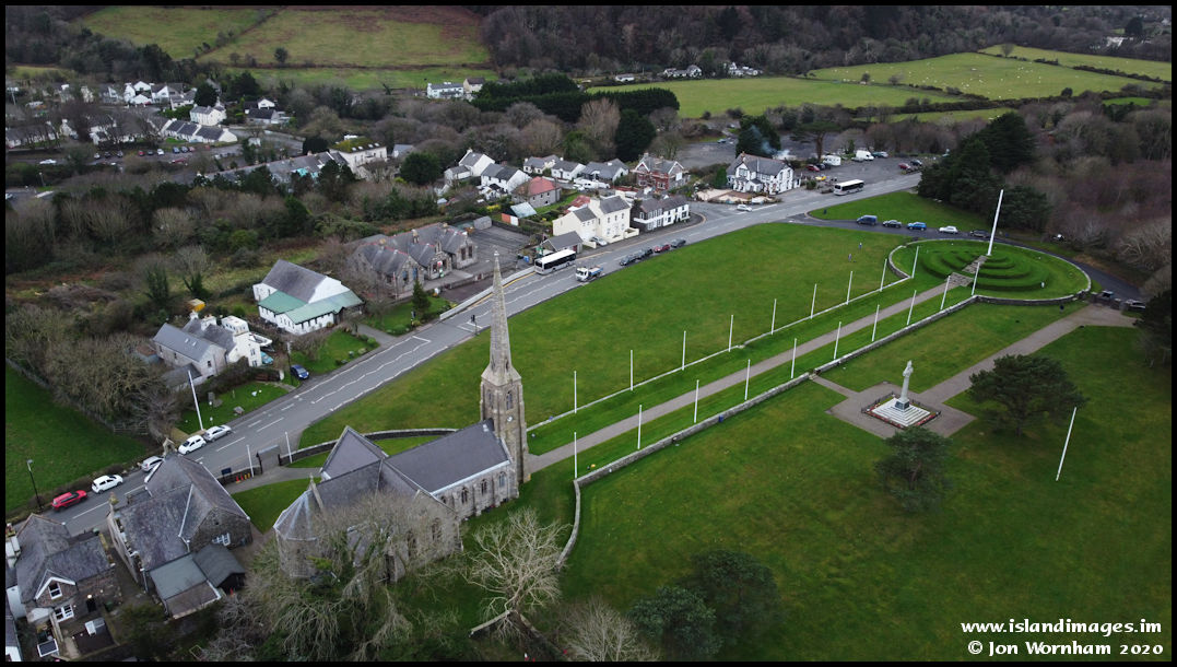 St John's CHurch, Tynwald Hill and the ceremonial walkway between them.