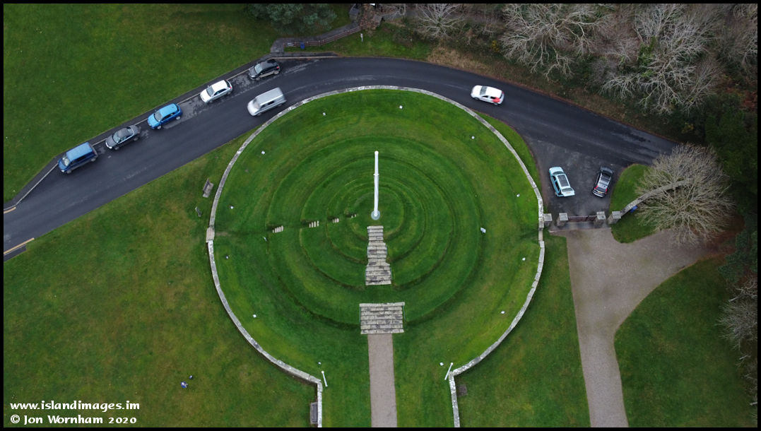 An almost vertical view of Tynwald Hill, site of the annual open air sitting of the Isle of Man parliament, every July 7th.
