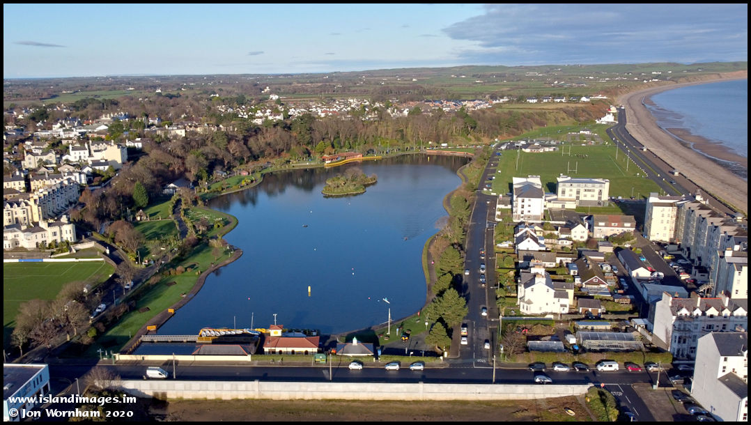 Looking north across the Mooragh Park lake. At one time this was the course of the Sulby River into the sea, before it was diverted through the present day harbour.