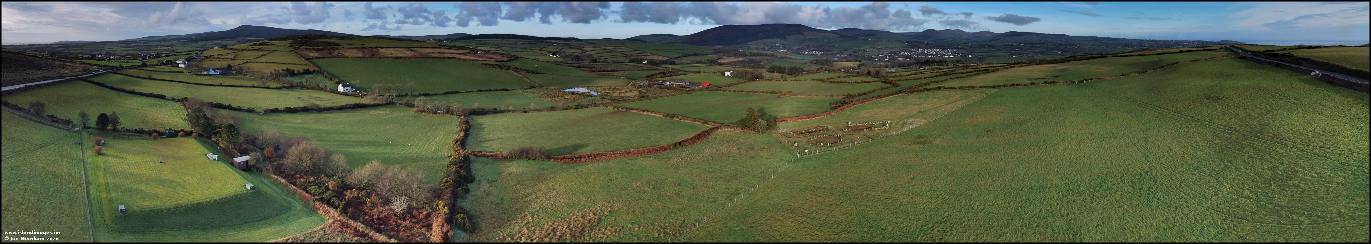 Some nice winter sunlight in the foreground of this panorama, taken close to the ancient Celtic/Norse settlement at The Braaid.