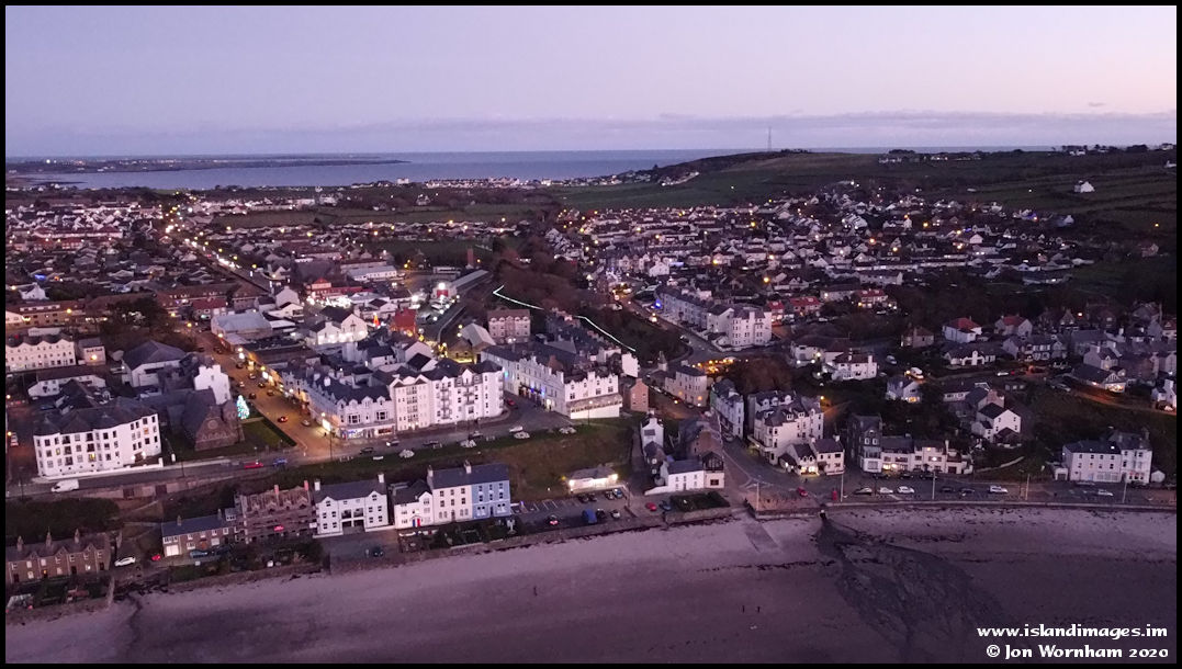 The central part of Port Erin from the air. It's actually quite dark now and I'm shooting on manual setting with ISO 1600 and a shutter speed of 1/13th second.