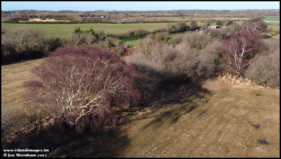 A lower level view of the Grey Willows at the field boundaries.