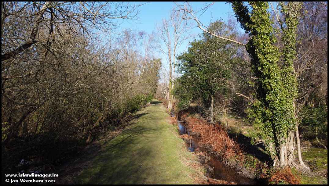 A low level view at the final flying location, looking north along the green lane from close to the Wildlife Park.