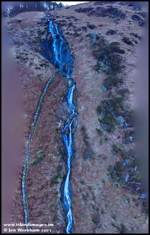 An attempt at a 'vertical panorama' of the waterfall. PtGui has made quite a good job of stitching together the original pictures. The next and final picture is just a larger version of this.