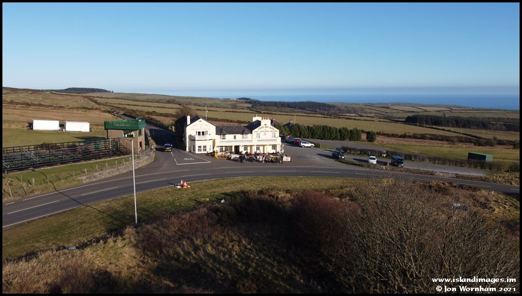A lower lvel view of the Creg-ny-Baa Hotel, where several bikers are enjoying a meet up and refreshments outside after the Govt. had announced earlier that there were no further lockdown restrictions.