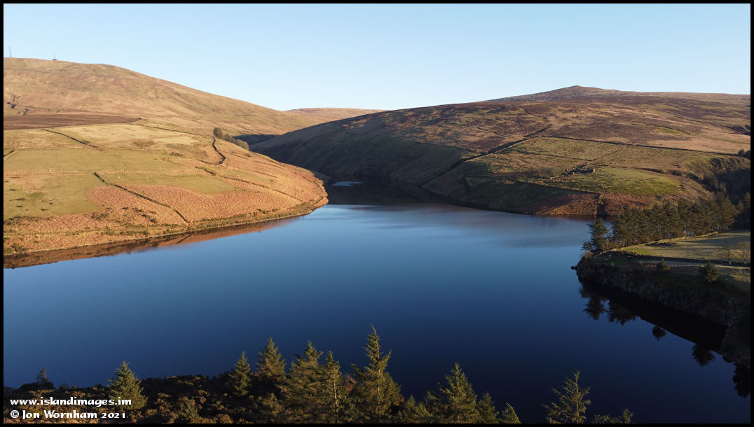 Over a small plantation and looking south east towards the Cramag tholtan on the far side of the reservoir.