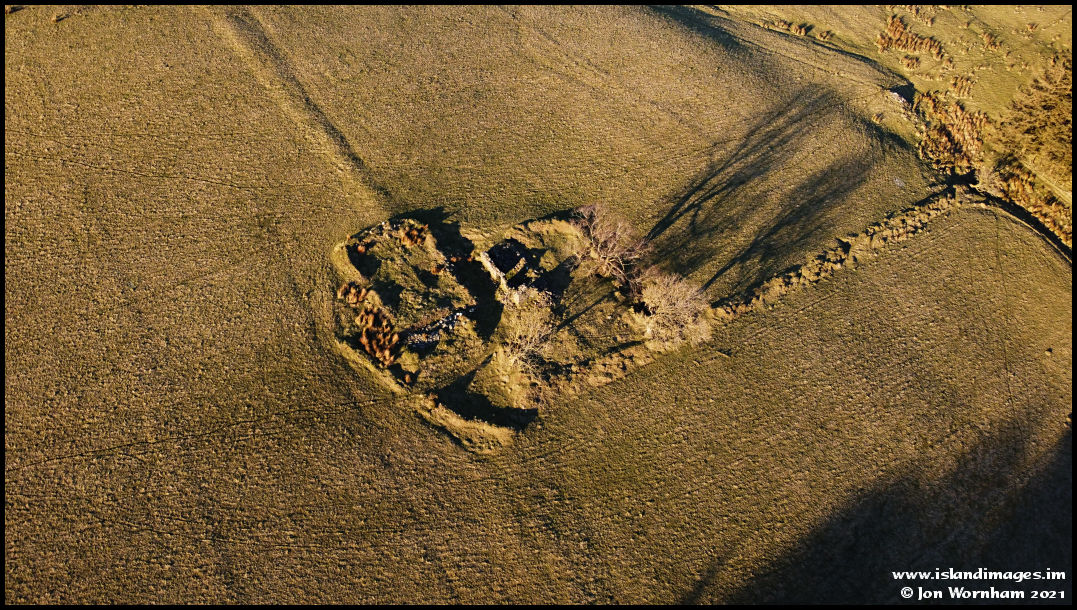 Just behind the reservoir is the tholtan of Croit, the low sun angle picking out the contours of the earth banks around the farmhouse area.