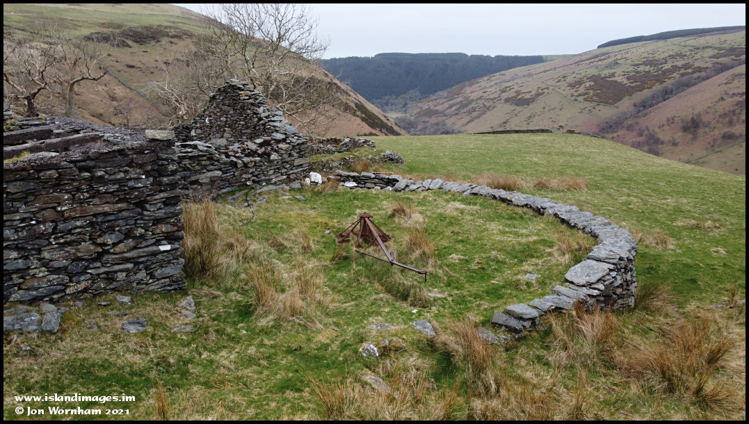 Looking across the horse powered mill with Sulby Glen falling away beyond.