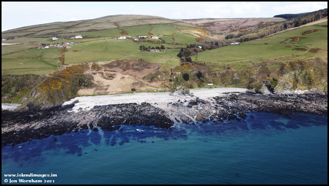Climbing further away for the bigger view of the beach. as with most IOM beaches with exposed rocks at low tide, a channel was cut through them to allow boats to be launched at all tidal states.