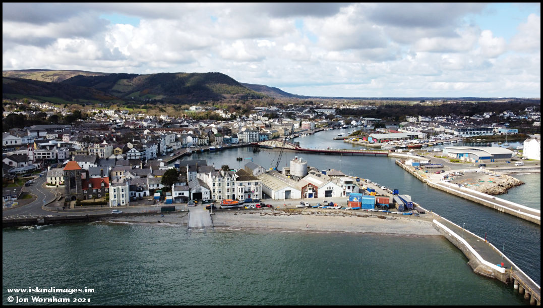Looking into the harbour area from south of the breakwaters. The Ramsey Lifeboat can be seen on it's trolley by the roadway, as the lifeboat house is currently undergoing reconstruction works.