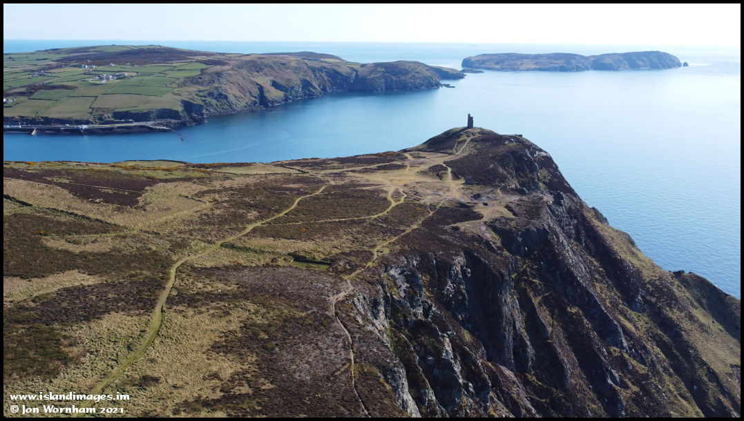 Bradda Headand the Milner Tower, with the Calf of Man as a backdrop.