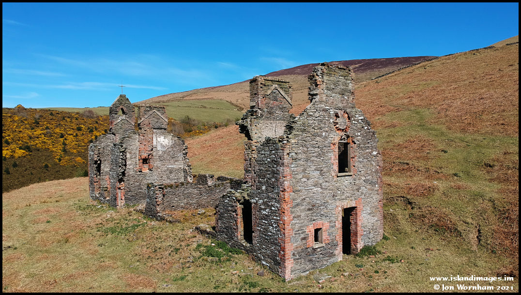 Glion Kiark slate quarry offices. The far end of the building that looks rather like a church, held a bell to ring the start and end of shifts and the 'cross' above is a lightning conductor.